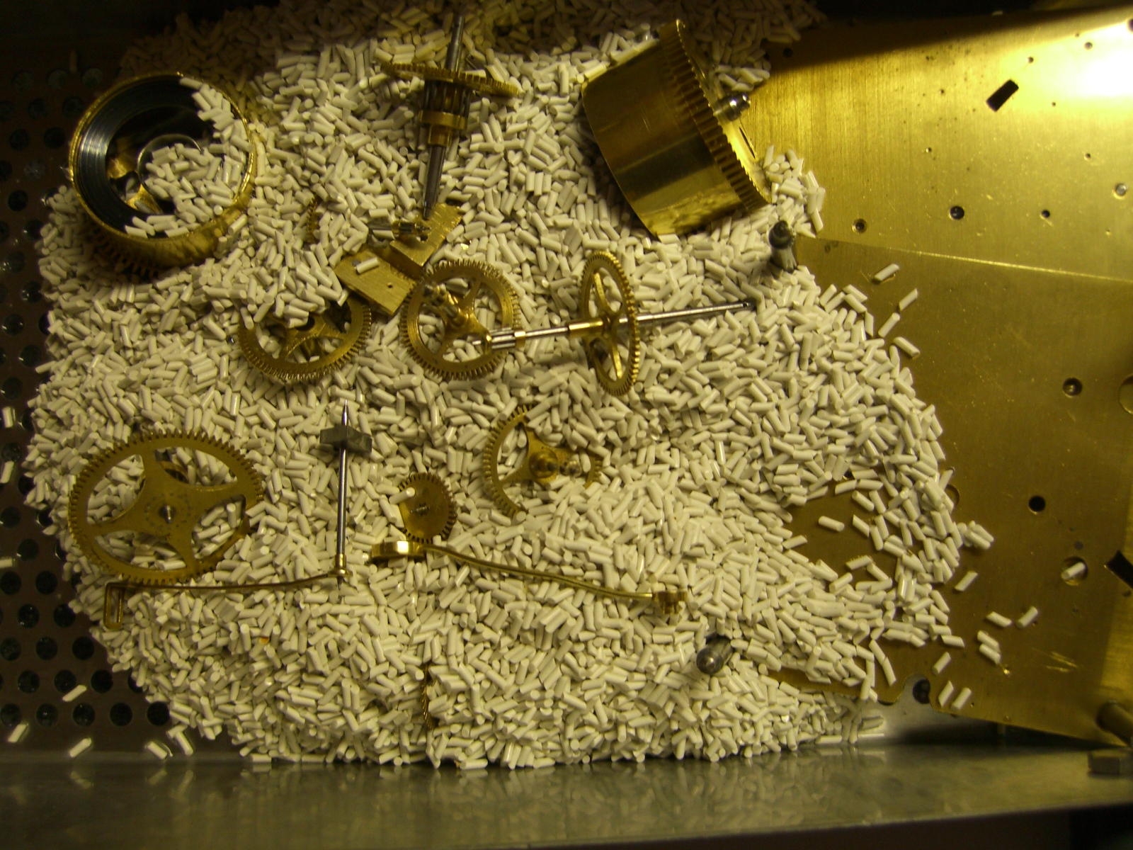 Um Ihnen hier einmal ein Ergebnis einer Reinigung darzustellen, habe ich Ihnen im Folgenden etwas Bildmaterial zusammengestellt, das die einzelnen Schritte der Reinigung einer Großuhr aufzeigt.